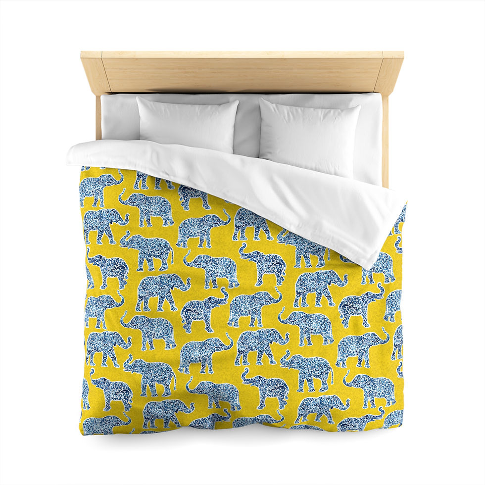 Yellow/Blue Colorful Elephant Microfiber Duvet Cover, Fun Bedding